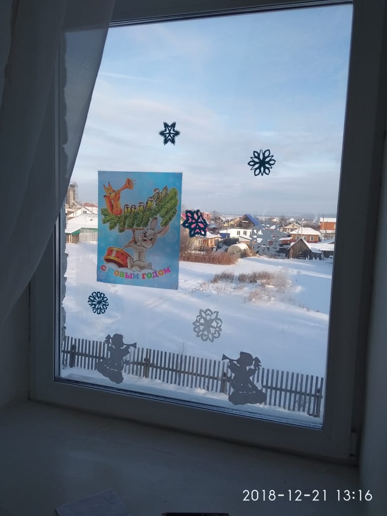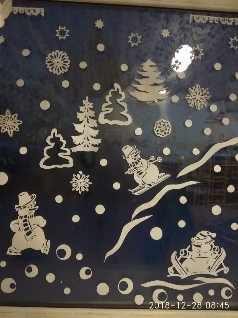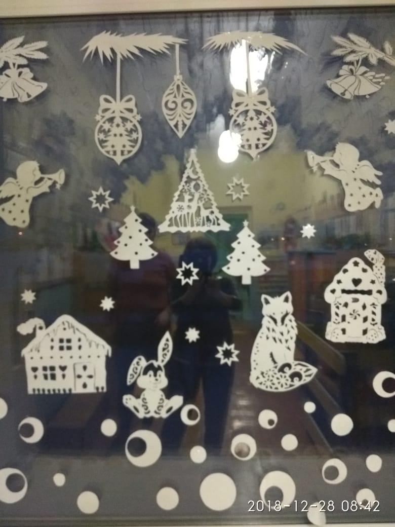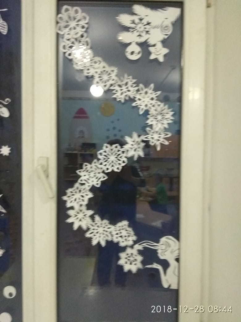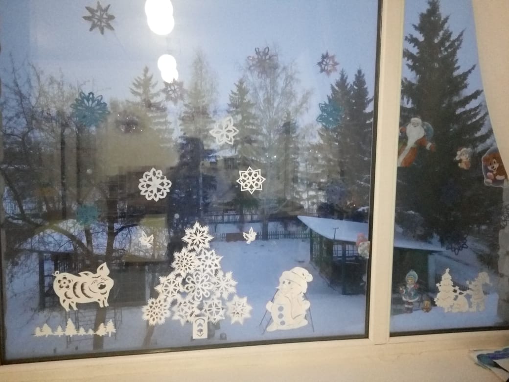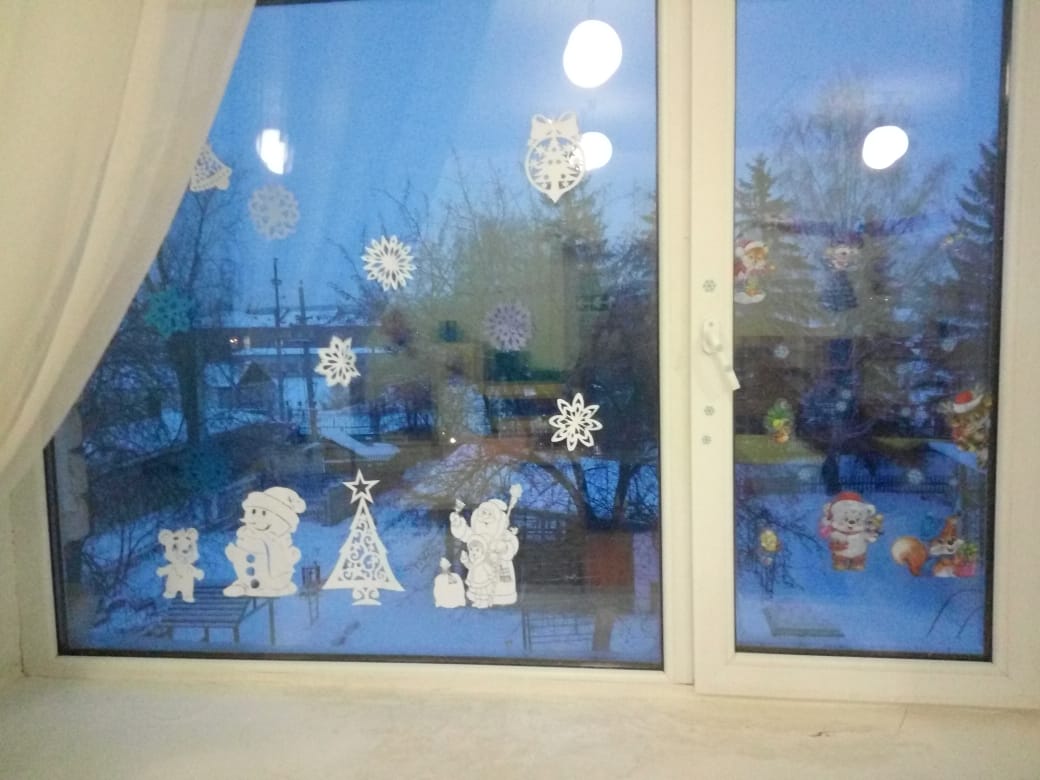 В преддверии нового года прошел конкурс зимнего оформления окон "Морозные узоры". Воспитатели и родители постарались на славу, а дети были в восторге. Окна получились сказочными и загадочными: елочки, снежинки, Дед Мороз, Снегурочка и другие сказочные герои разместились на окнах групп и музыкального зала.
