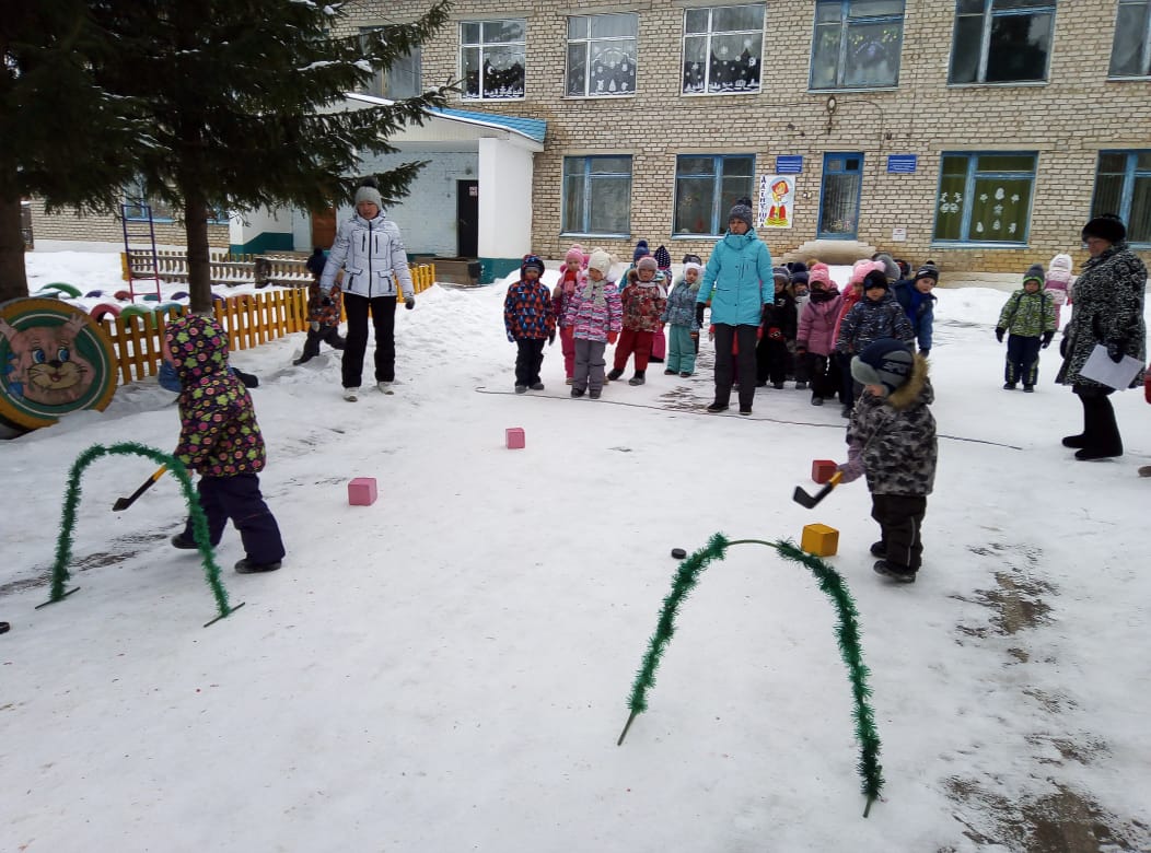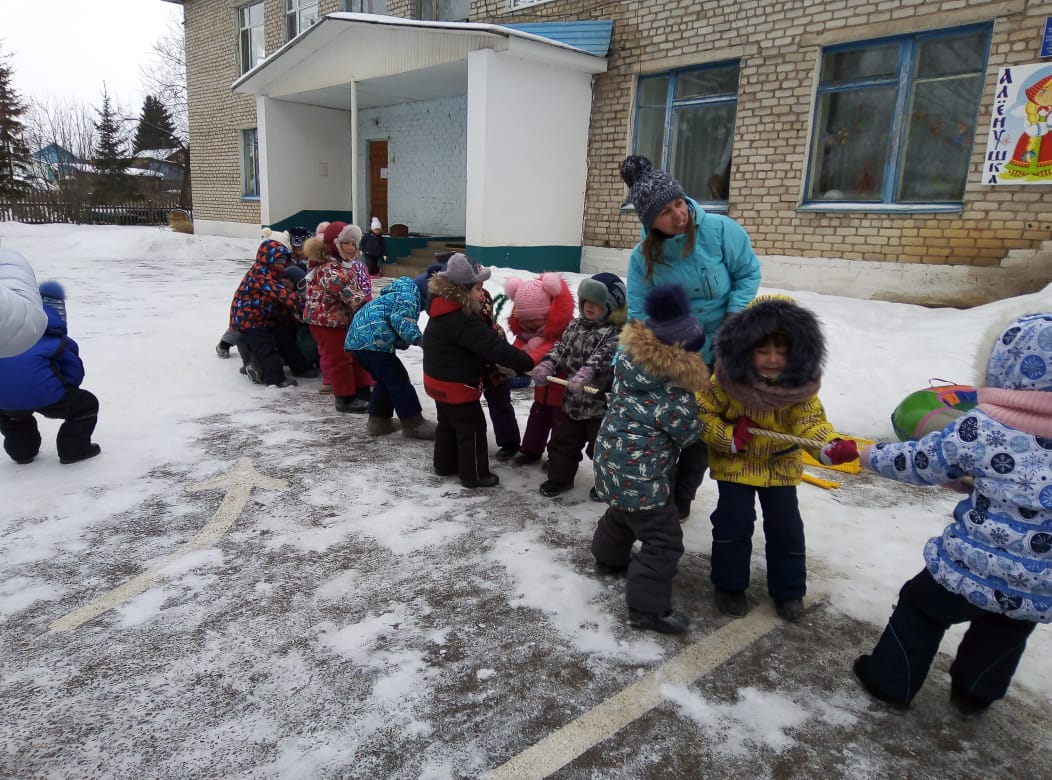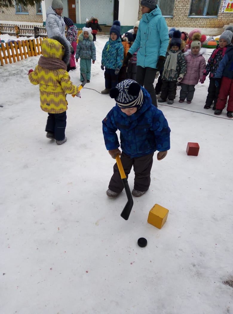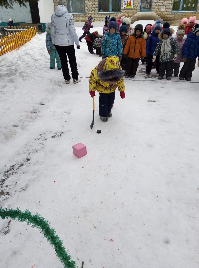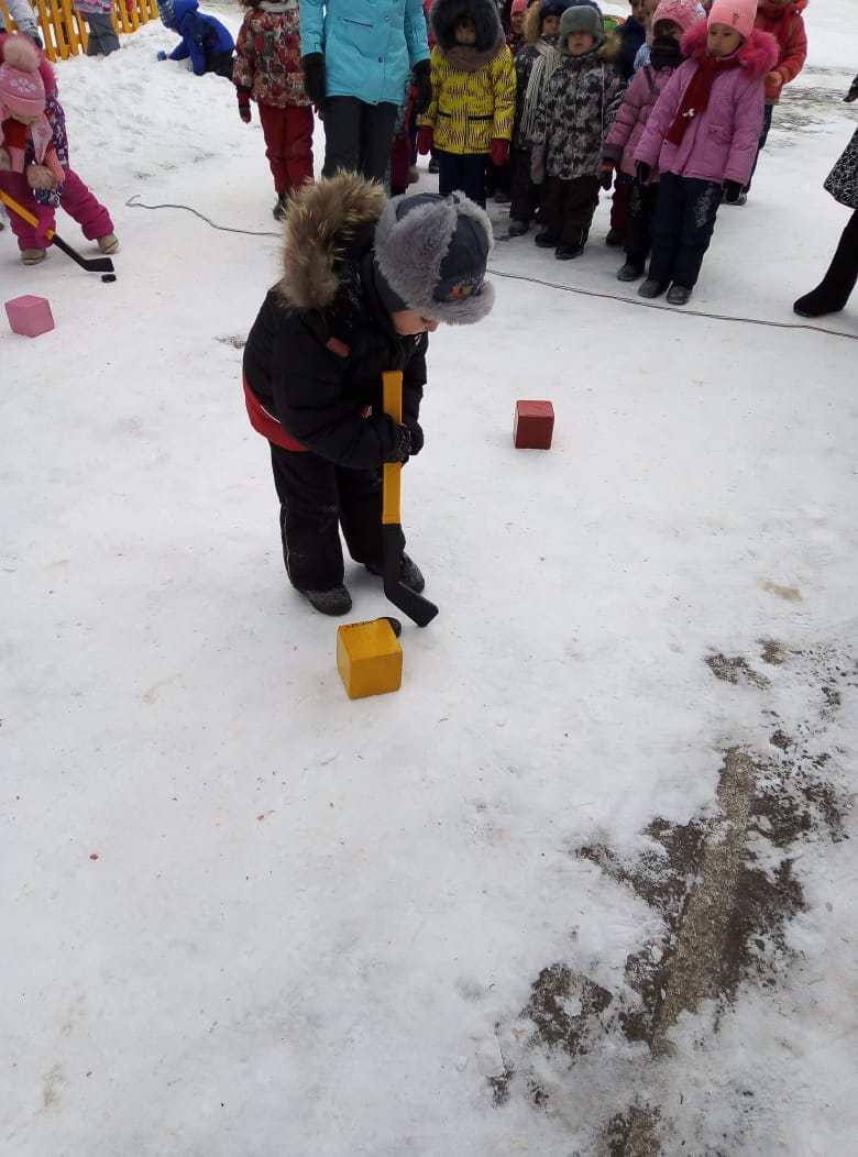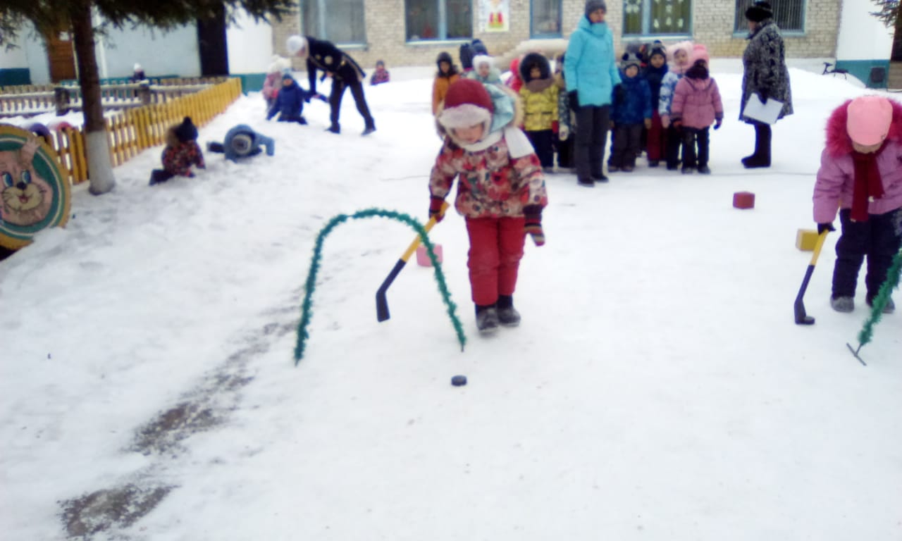 «Трус не играет в хоккей», «Меткий стрелок», «Катание на плюшках», «Перетягивание каната», «Пробеги - не задень», «Не урони снежок», «Снежная карусель».