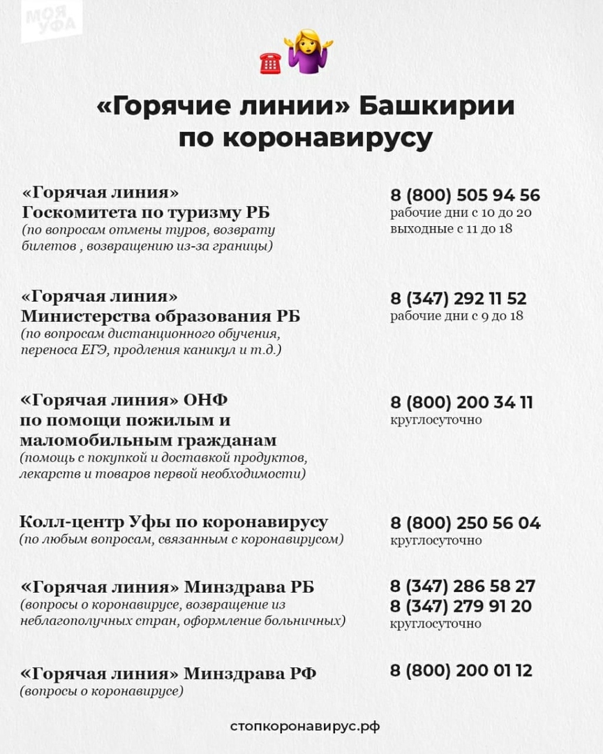"Горячие линии" Республики Башкортостан по короновирусу